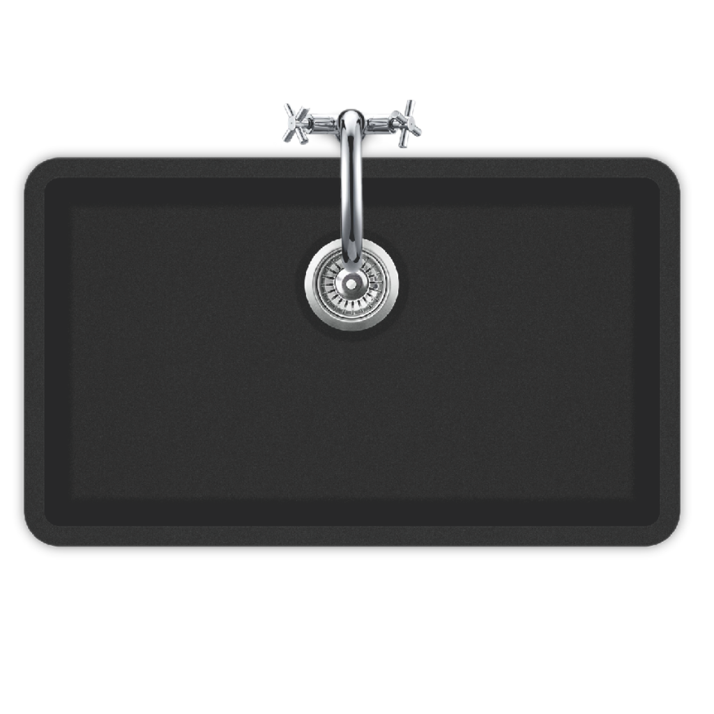 The QUARTZ sink (18 × 21 × 9 inches) by JBSCO features an overall size of 785 × 480 × 215 mm, offering a spacious and stylish solution for modern kitchens. Crafted from premium 14 mm thick quartz, a durable blend of natural quartz stone and acrylic resin, it provides outstanding strength and long-lasting performance. The fade-resistant matte black finish gives the sink a sleek and timeless appearance, while the rectangular design with sharp, precise corners enhances its modern aesthetic.