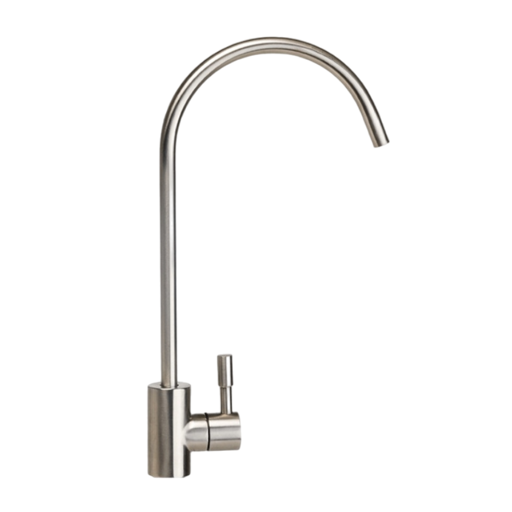 The RO TAP Silver is crafted from high-quality AISI 304-grade stainless steel with 18% chromium and 8% nickel, ensuring excellent durability and strong resistance to rust and corrosion. Its brushed nickel matte finish gives a smooth silver appearance while enhancing long-lasting performance and wear resistance. Designed for deck-mount installation, it fits a single 30–32 mm hole, providing a clean and secure setup. The tap features durable ceramic disc valves tested for up to 500,000 cycles, delivering a smooth water flow of 9.1 LPM at 3 BAR, optimized for 45 psi water pressure.